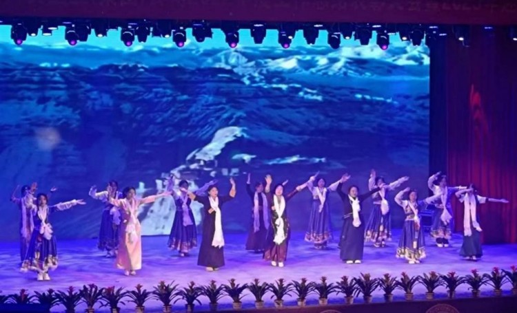 我院表演了歌曲《国家》和藏舞《相会》两个精心排演的节目。优美的舞姿、悦耳的歌曲,展现出新时代青年奋发向上的精神与独特个性的青春活力,作为当代大学生,他们用热情洋溢的歌舞表达对祖国的爱意,也表达了为实现中华民族伟大复兴而奋斗的决心和信心。