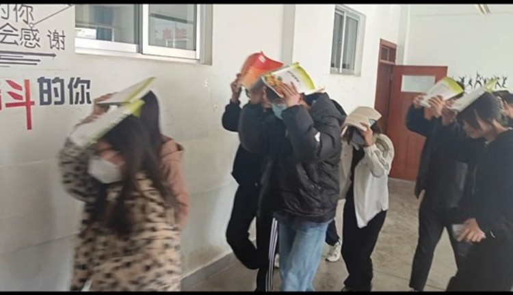 在教学楼地震避震和逃生演练中,同学们在任课老师的统一指挥下开展紧急避险,双手抱头就近躲避到教室课桌下,保护自己的头部安全,预警间歇,任课老师、班主任和学生干部及时有序地组织学生按照安全逃生路线疏散,在整个演练过程中,听从指挥、行动统一、秩序井然,在规定时间内,全体师生安全疏散到安全位置。