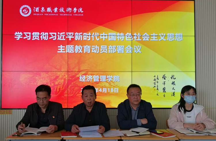 4月18日下午,经济管理学院召开了学习贯彻习近平新时代中国特色社会主义思想主题教育动员部署会议,学院党支部书记、院长丁天明主持会议,全体党员、教师参加会议。