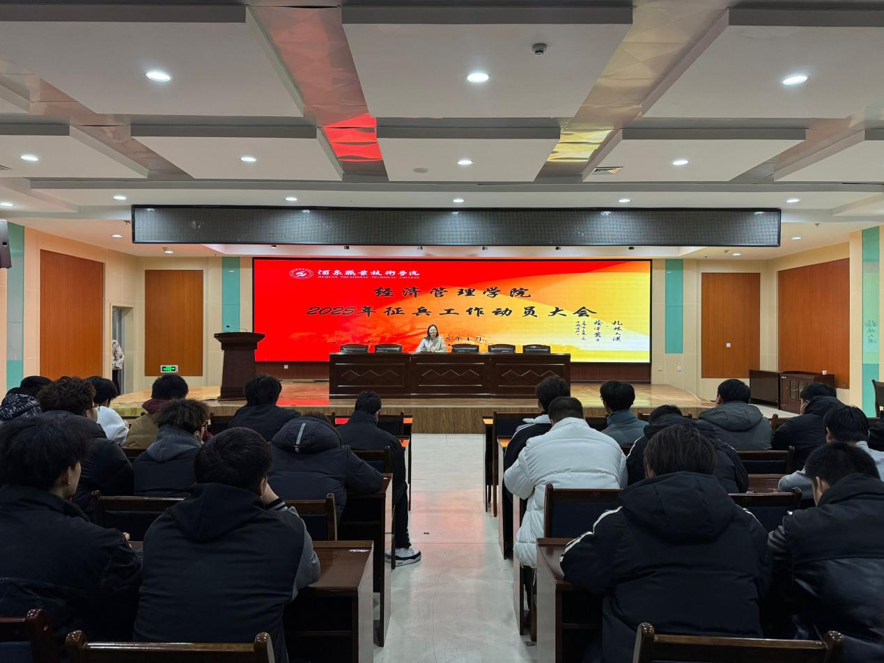 为积极响应国家征兵号召,鼓励广大学生投身国防事业,为国防建设贡献力量,1月7日晚,经济管理学院在图书馆四楼会议室召开2025年征兵动员工作会议。学院副院长苏芸芸主持会议,2023、2024级全体在校男生约200余人参加了会议。