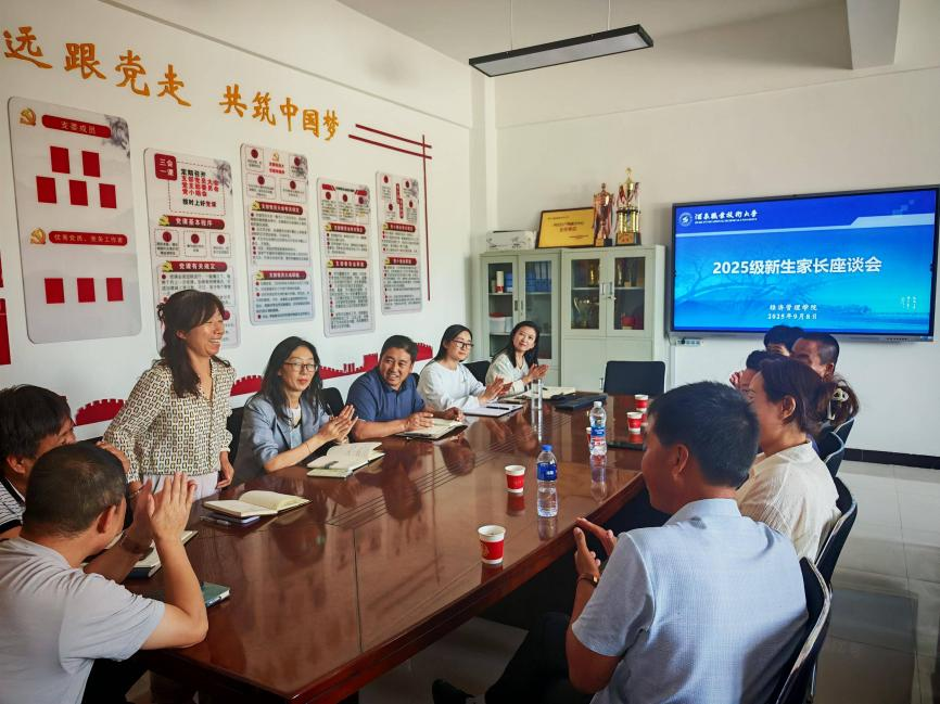 为促进家校合作、助力2025级新生适应大学生活并明确发展方向,经济管理学院于2025年9月8日下午举办了新生家长座谈会。学院领导班子、各专业系主任、新生班主任代表和二十余名新生家长齐聚一堂,围绕人才培养、专业发展、学生管理等话题展开座谈交流。