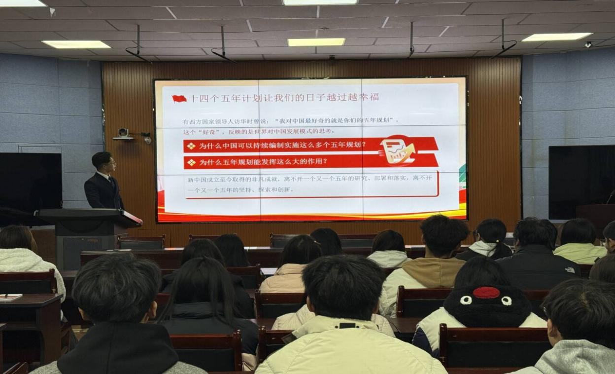 宣讲团成员围绕四中全会精神及“十五五”规划等核心内容,重点解读构建现代化产业体系、高水平科技自立自强等重要部署,助力学子明晰专业学习与时代发展的契合点。